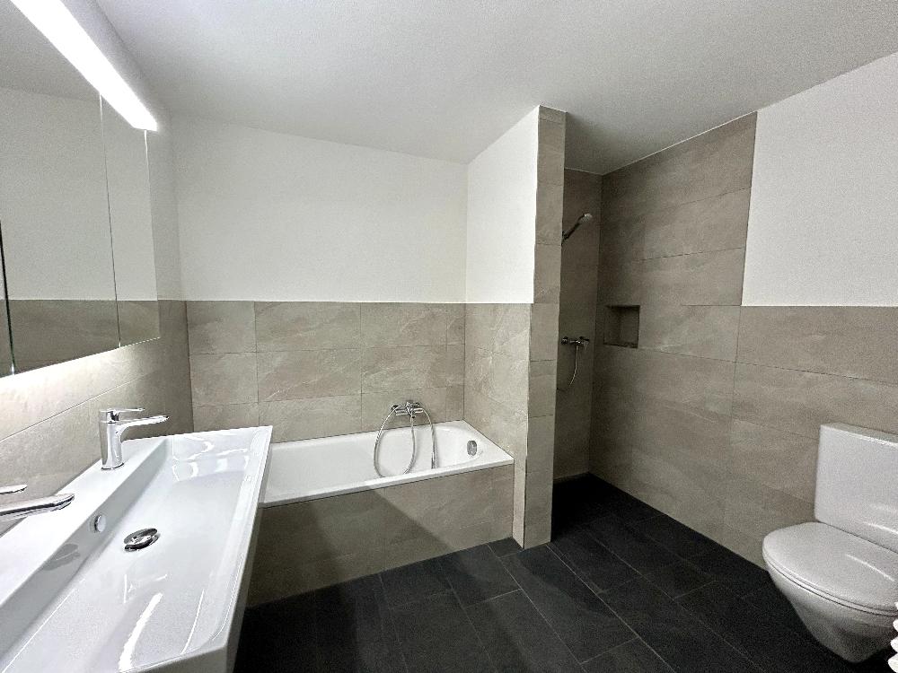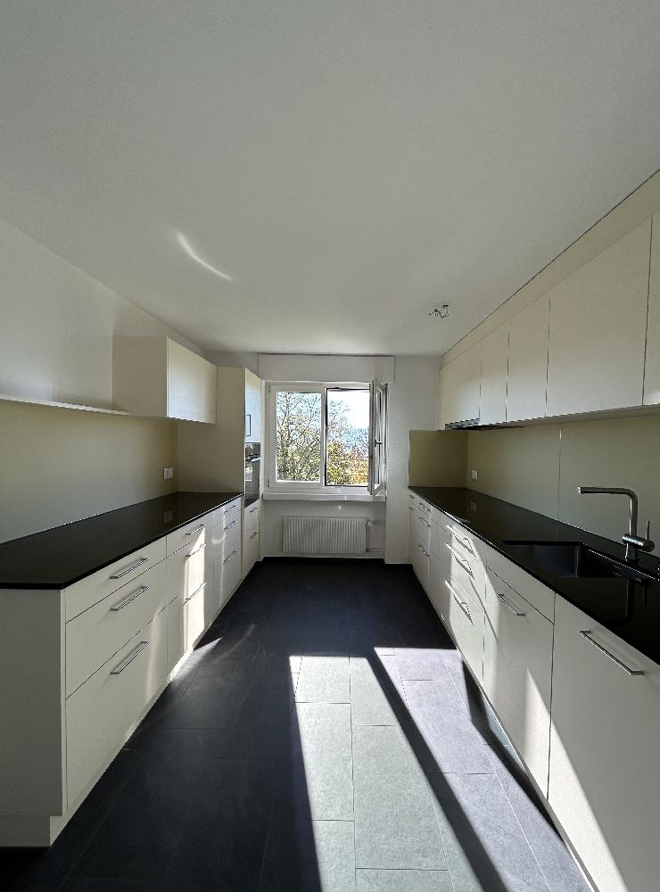 Grosszügige totalsanierte 3,5-Zimmerwohnung mit praktischem Grundriss, verglastem Balkon mit Weitsicht, überaus grossem Wohn- und Essbereich, 2 Einzelzimmern, 1 Abstellraum, neue moderne Küche mit Vorratsraum und viel Stauraum, Korridor mit Einbauschränken, Bad in hohen Aussbaustandard mit Dusche und Badewanne sowie sep. WC. Der allgemeine Fitnessraum kann jederzeit genutzt werden. Die gemeinschaftliche Dachterrasse lädt zum Verweilen ein.