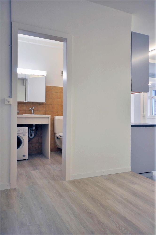 Wir bieten Ihnen einen modernen, offenen Loft-Raum, indem der Industriecharakter bewusst erhalten wurde. Er ist ausgestattet mit Deckenbeleuchtung, es gibt einen Wandschrank mit Abstellmöglichkeit, eine reduzierte komfortable Einbauküchenkombination, die alles bietet was es braucht. Bad mit Dusche und Waschmaschine.