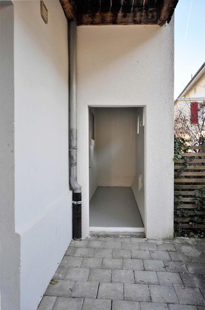 Der Grundriss ermöglicht eine vielfältige Einteilung und Nutzung. Der kleinen Hinterhof bietet einen sonnigen Sitzplatz, wovon ein kleiner Abstellraum, 4,5 qm, zugänglich ist.