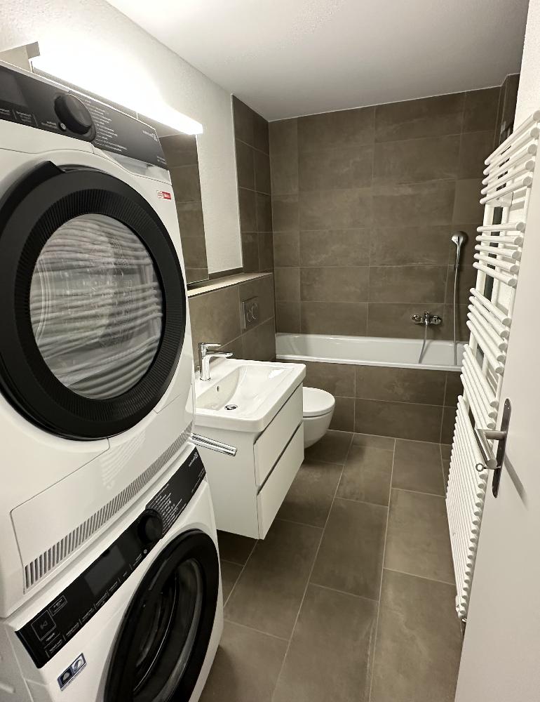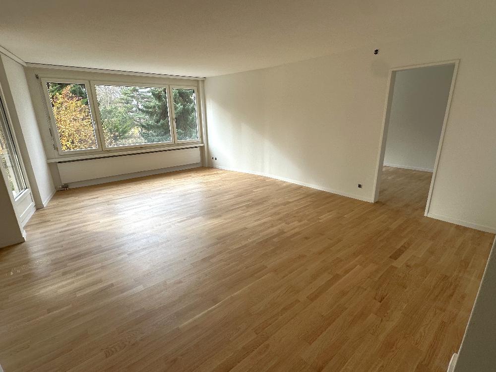 Ruhige, sonnige und kinderfreundliche Lage mit wunderschönem Blick ins Grüne in bevorzugtem Wohnquartier. Komplett sanierte Wohnung mit Eichenparkett, eigenem Waschturm in der Wohnung sowie einigen Einbauschränken, Badezimmer mit Dusche und Badewanne, sep. WC, Abstellraum, zwei Sitzplätzen und grossem Balkon.