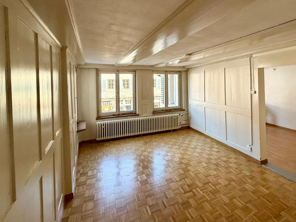 Der Altbau überzeugt mit authentischem Charakter und einer sonnigen Dachterrasse. Das Gebäude ist einfach ausgebaut, wurde stetig unterhalten und bietet zugleich attraktives Renovationspotenzial.