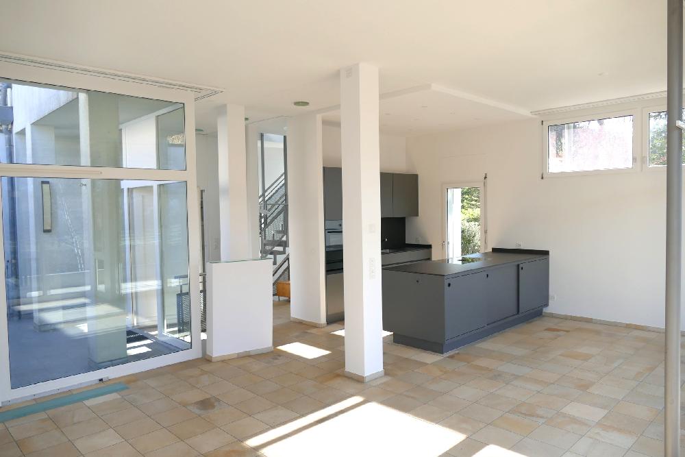 Der offene Wohn- und Essbereich mit beeindruckender Raumhöhe bildet das Herzstück des Hauses und schafft ein einzigartiges Wohngefühl. Grosszügige Aussenflächen sowie durchdachte Grundrisse bieten höchsten Wohnkomfort.