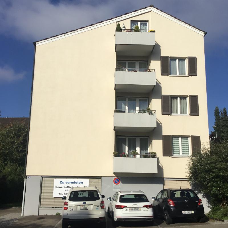Vielseitig nutzbare Räumlichkeiten an verkehrsmässig gut erschlossener und dennoch ruhiger Lage im Bereich Emmersberg/Buchthalen. Für stilles Gewerbe: Ladenlokal (20 m2), Büro (18 m2), Werkraum/Lager (60 m2), WC.