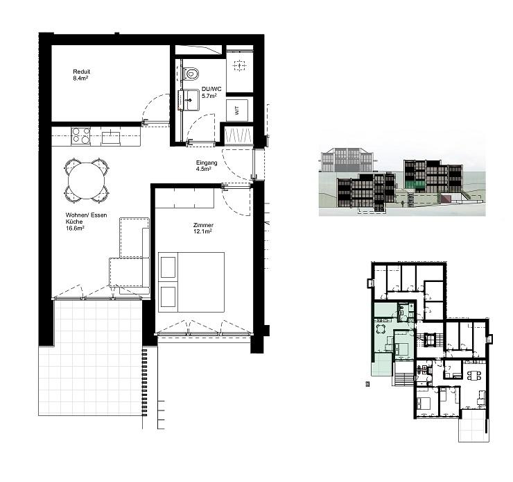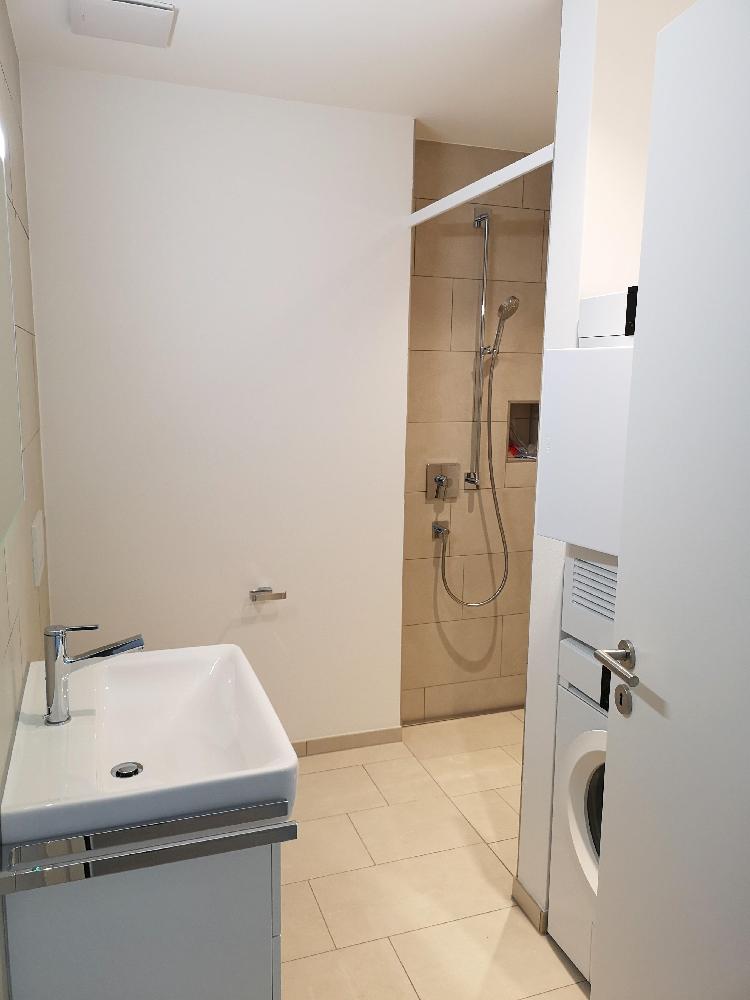 Moderner und hochwertiger Ausbau der Wohnung mit offener Küche, Eichenparkett und keramische Plattenböden im Nasszellenbereich, Dusche/WC, eigene Waschmaschine und Tumbler, grosszügiges Reduit, eigenes Kellerabteil, grosszügiger Gartensitzplatz. Autoabstellplätze in der direkt zugänglichen Einstellhalle können dazugemietet werden.