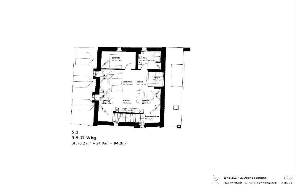Loggia mit Sicht auf den Munot, Lift bis in das 3. Obergeschoss.