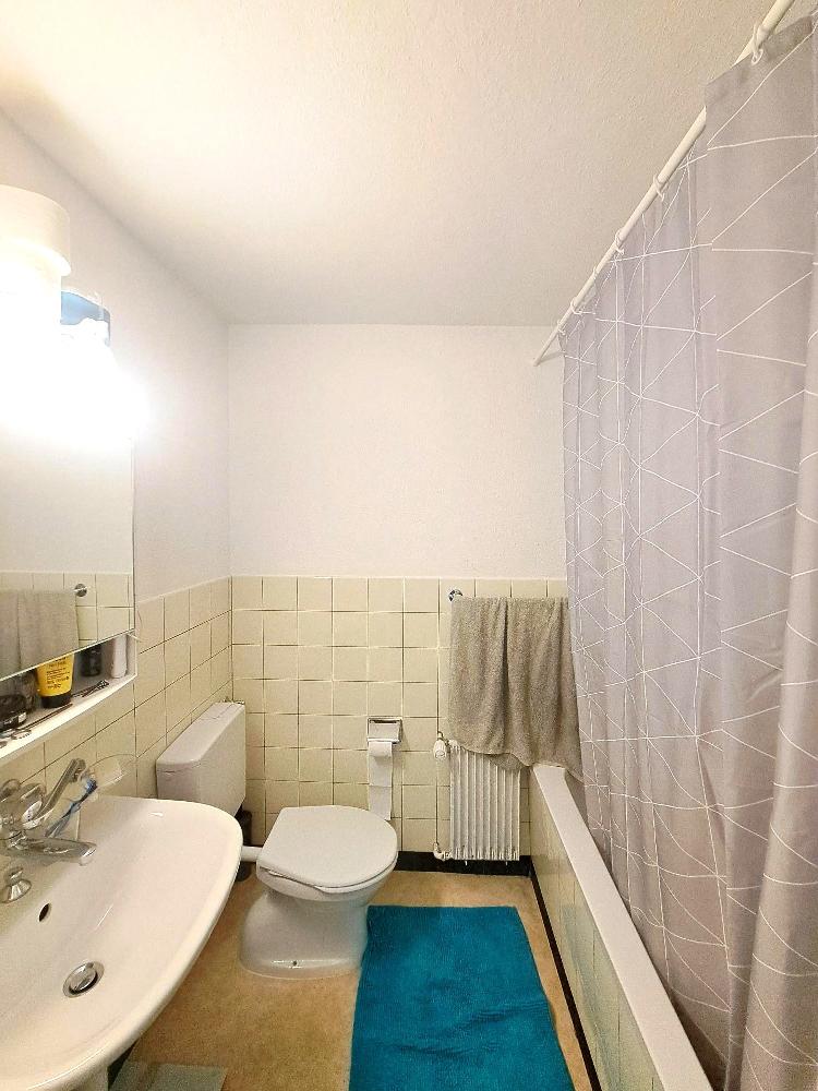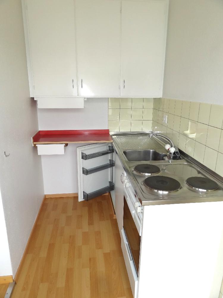 Die Wohnung verfügt über ein Badezimmer mit Badewanne. Das grosszügige Wohn- und Schlafzimmer sowie der Küchenbereich verfügen über einen Laminatboden. Badezimmer mit Novilonboden. Der abgetrennte Küchenbereich, sowie ein Einbauschrank bieten Platz für Stauraum.