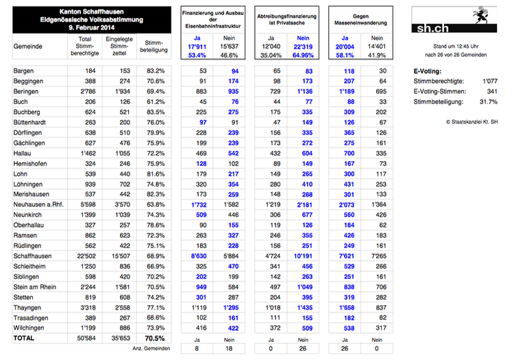 Volksinitiative 'Gegen Masseneinwanderung' Ja: 20'004/ Nein 14'401