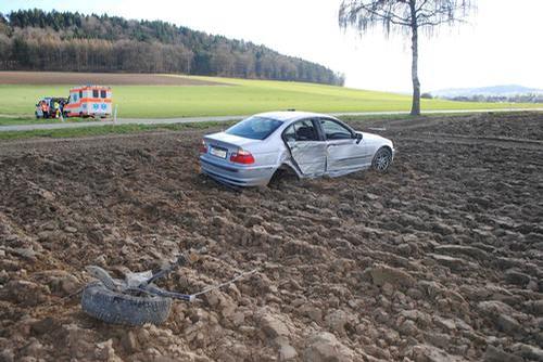Ein deutscher Personenwagenlenker fuhr von Wilchingen herkommend auf der H 13 in Richtung Neunkirch. In einer langgezogenen Kurve, angeblich vor einem Ueberholmanöver, geriet sein Fahrzeug aus bisher ungeklärten Gründen von der Fahrbahn ab und kollidierte mit einem Baum. Anschliessend schleuderte der Wagen in einen Acker, wo er zum Stillstand kam. Der Lenker, sowie sein Mitfahrer erlitten Schürfungen und Prellungen. Am Personenwagen entstand Totalschaden. Dieser musste durch eine private Bergungsfirma geborgen und abtransportiert werden. Bezüglich des genauen Unfallherganges sind noch Ermittlungen im Gange.