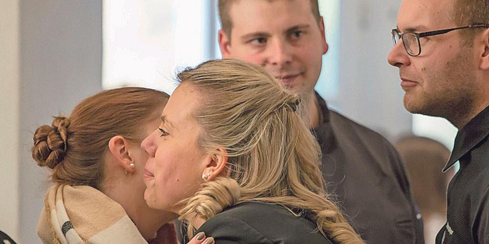 Küsschen als Willkommensgruss: Tatjana Moser (Bild, vorn) und Joël Bollinger (rechts) hatten am letzten Sonntag zum Tag der offenen Türen in den «Unterhof» nach Diessenhofen geladen. Das neue Pächterpaar führt das Restaurant an bester Lage direkt am Rhein seit Anfang dieser Woche.