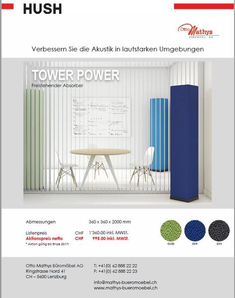 Die Akustiksäule Tower ist ein hocheffektiver, freistehender Absorber, der es Ihnen ermöglicht eine balancierte akustische Umgebung zu schaffen. Der Tower ist vom Gewicht sehr leicht was seine Umstellung im Raum kinderleicht macht. Sein Design und seine Maße eignensich ideal für Konferenzräume und Großraumbüros.